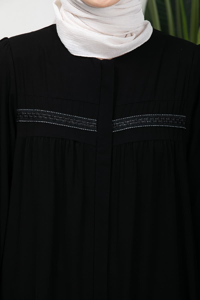 Ürün Özellikleri : Çocuk tesettür ferace afra model elbisemiz katlı, roba üstü detaylı, büzğülü kol tepesi büzğülü, kol ağzı lastikli, ceplidir.