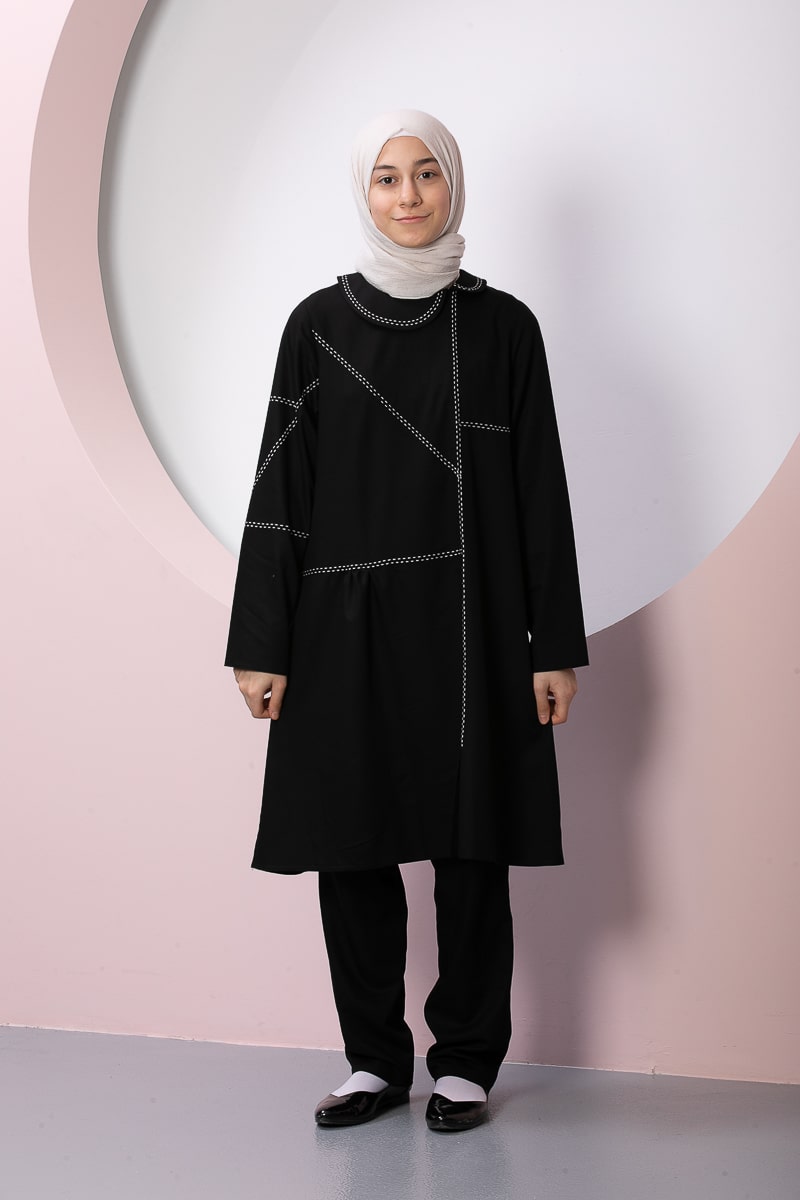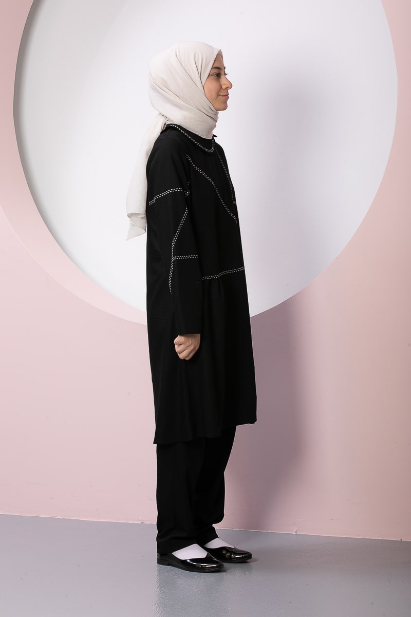 Çocuk Tesettür İkili Takım Alara Model Siyah Renkli Özellikleri