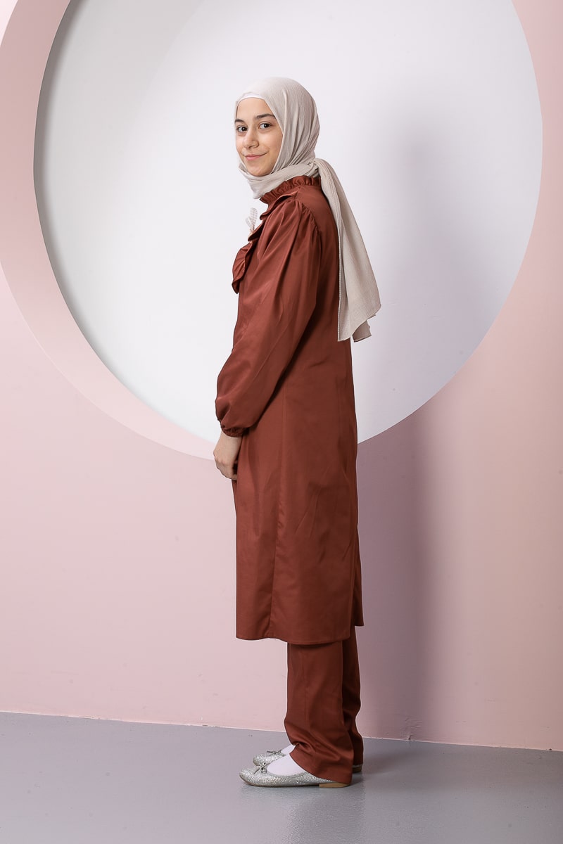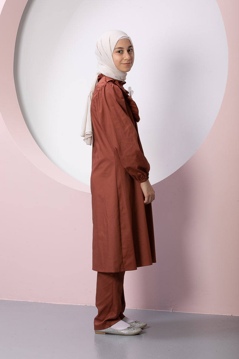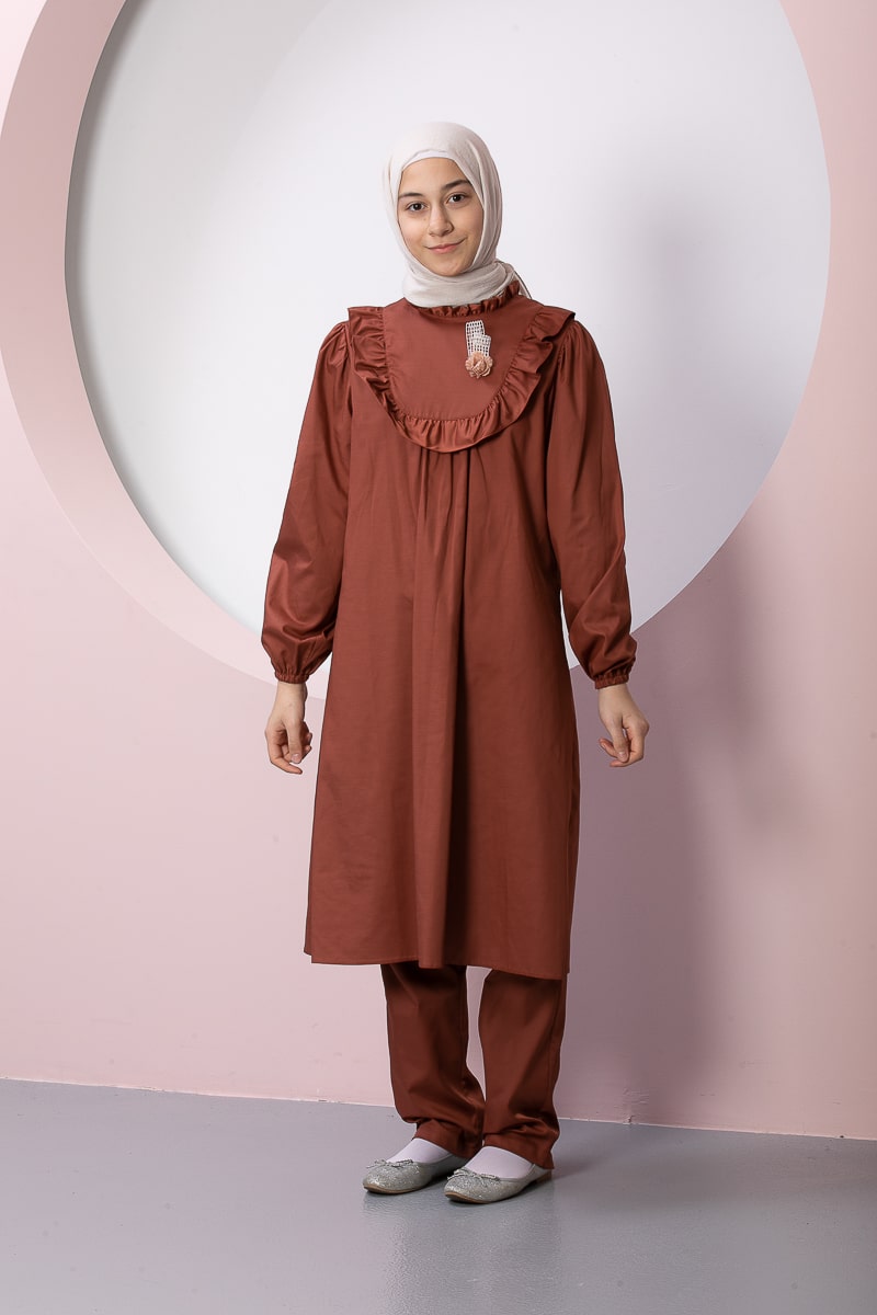 Çocuk Tesettür İkili Takım Asel Model Kiremit Renk