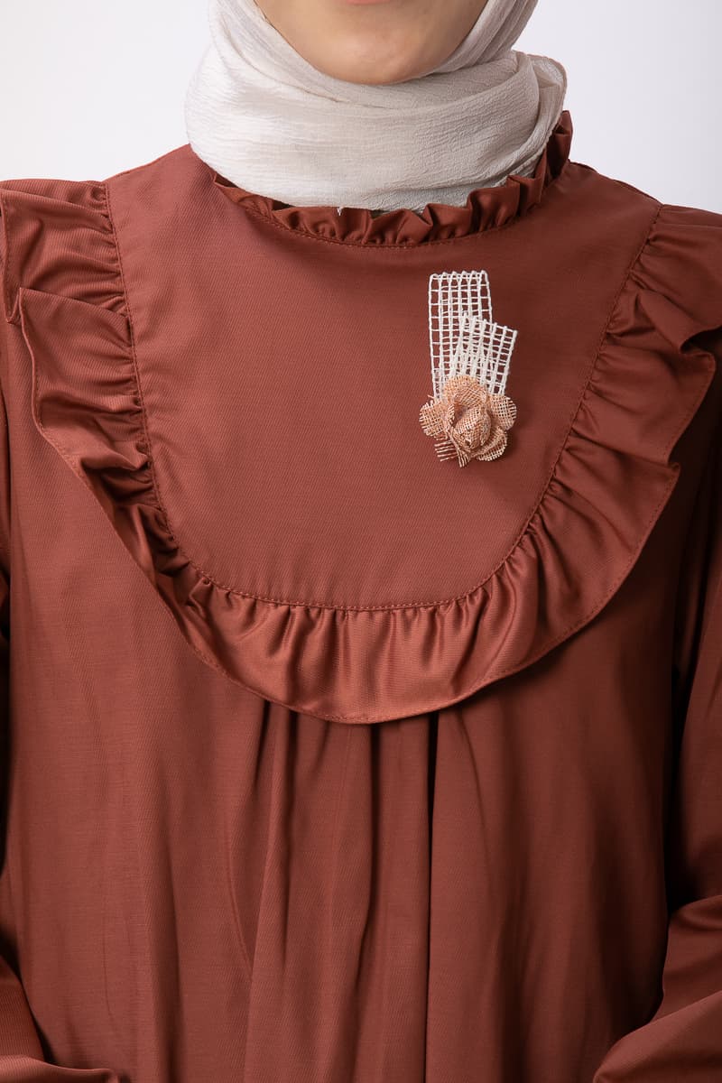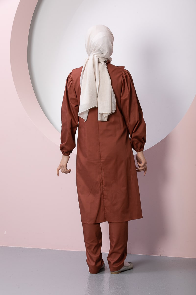 Çocuk Tesettür İkili Takım Asel Model Kiremit Renkli Özellikleri